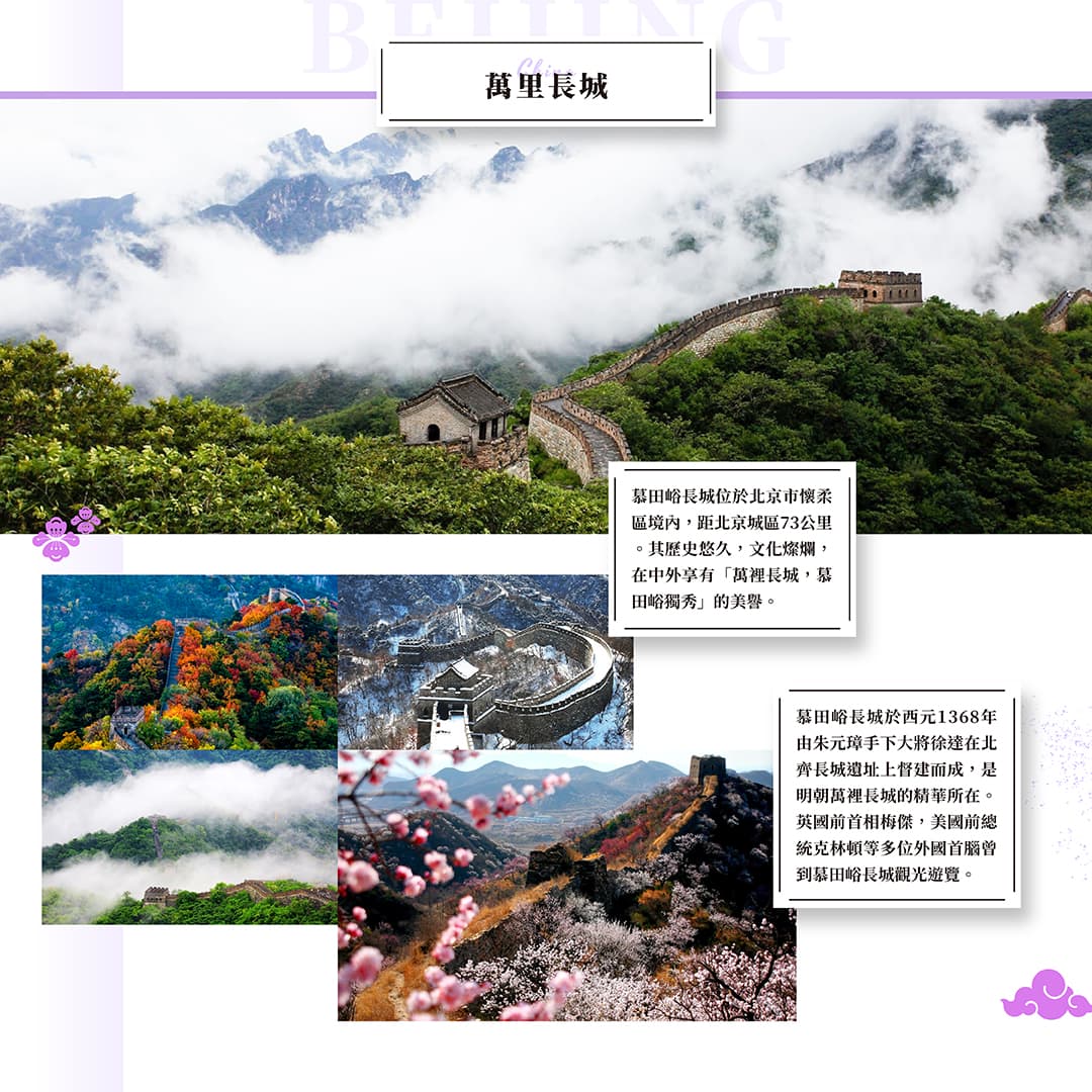 北京(居庸關長城、SOLANA藍色港灣、亮馬河風情水岸、奧林匹克公園-外觀鳥巢、水立方、奧林匹克塔)